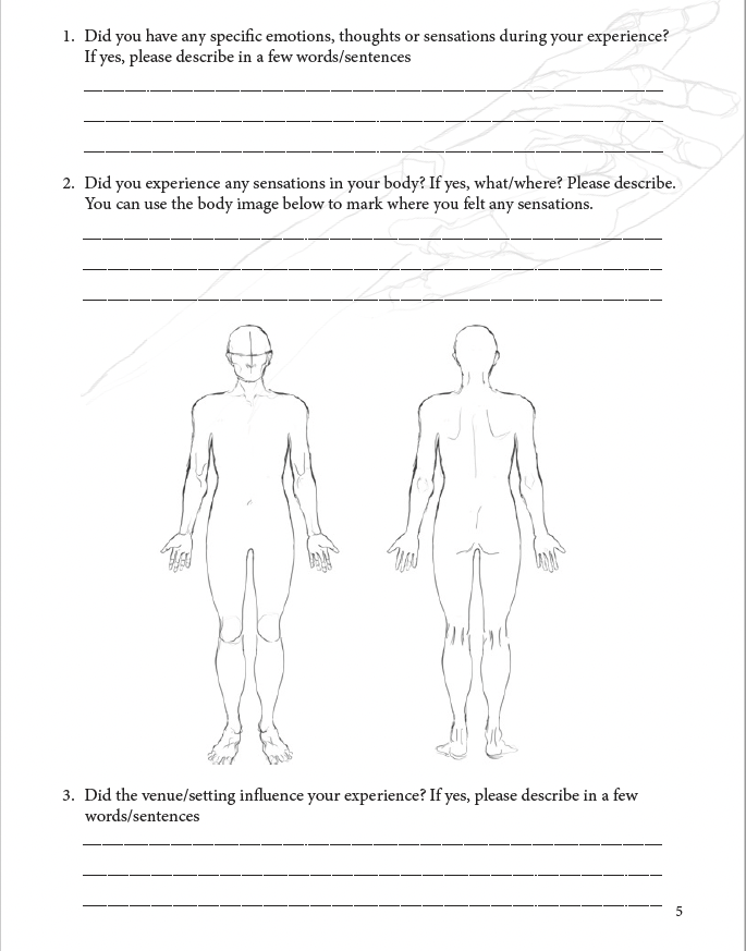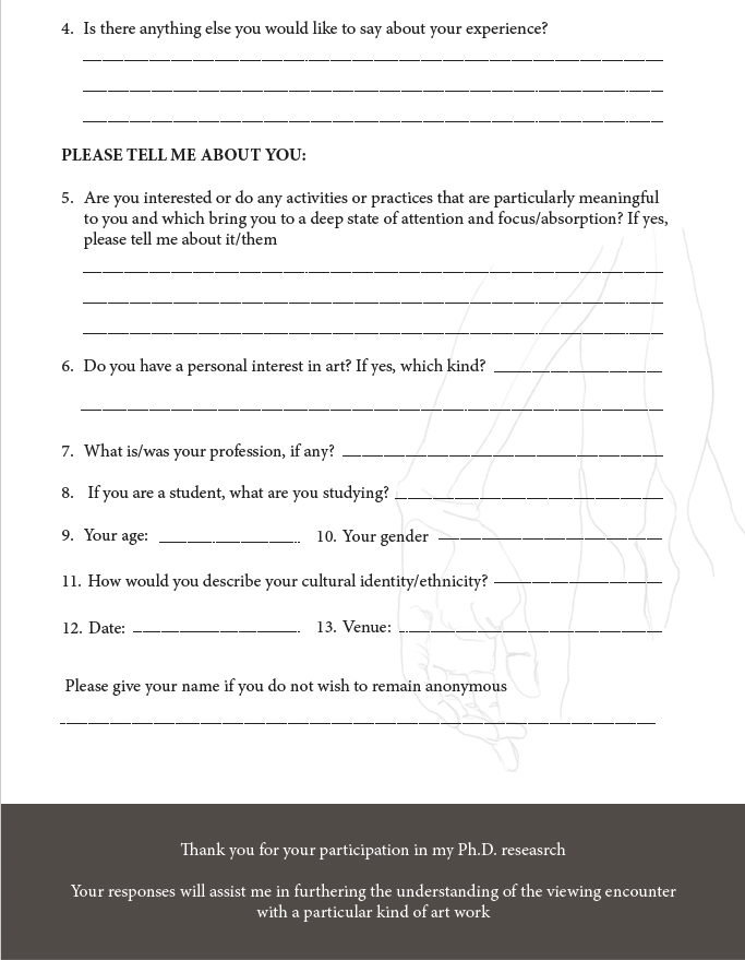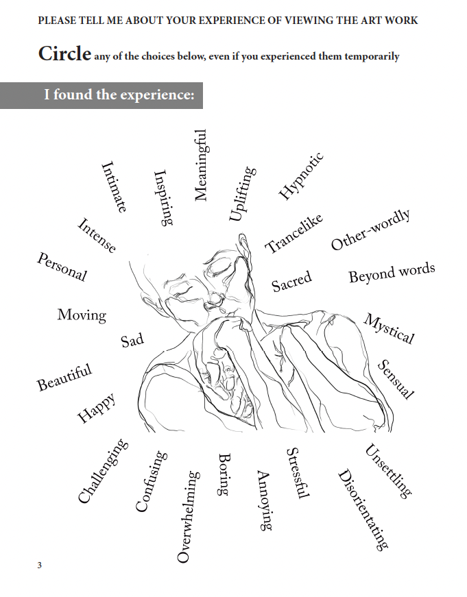 - Using the space below and pencil provided, quietly spend the next few minutes to draw or make any marks that reflect your experience of the work.